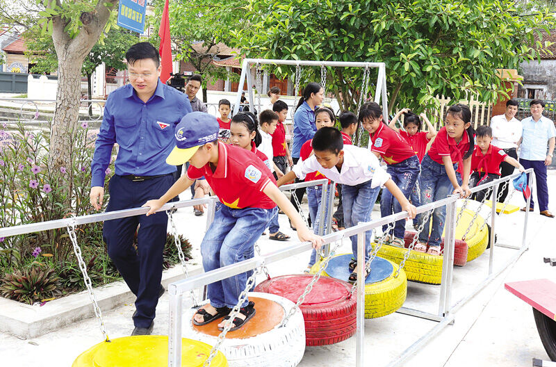 Công trình “Khu vui chơi từ vật liệu tái chế” đem lại cho trẻ em nhiều tiếng cười.