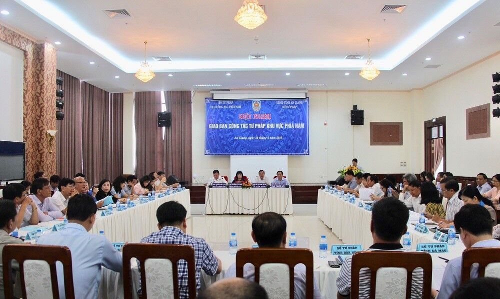 Thứ Trưởng Bộ Tư pháp Đặng Hoàng Oanh và ông Lê Văn Nưng - Phó Chủ tịch UBND tỉnh An Giang đồng chủ trì Hội nghị cùng sự tham gia của Sở Tư pháp của 25 tỉnh, thành phía Nam từ Khánh Hoà đến Cà Mau. Phát biểu tại hội nghị, bà Huỳnh Thị Lệ Thủy - Phó Cục Trưởng Cục công tác phía Nam – Bộ Tư pháp đã báo cáo với Hội Nghị công tác tư pháp khu vực phía Nam 6 tháng đầu năm 2019 cũng như phương hướng nhiệm vụ 6 tháng cuối năm. Theo đó, trong 6 tháng đầu năm, công tác tư pháp tại các địa phương trong khu vực phía Nam đã giám sát 8 nhóm nhiệm vụ trọng tâm, triển khai cơ bản, toàn diện có trọng tâm, trọng điểm các nhiệm vụ được giao theo kết luận của Thủ tướng Chính phủ Nguyễn Xuân Phúc và Thông báo Kết Luận của Bộ Trưởng Bộ Tư pháp Lê Thành Long tại Hội Nghị toàn quốc triển khai công tác tư pháp năm 2019.