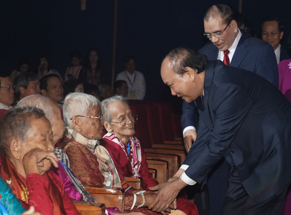 Thủ tướng Nguyễn Xuân Phúc gặp mặt các mẹ Việt Nam anh hùng tại Hà Nội, sáng 25/7. Ảnh: Quang Hiếu