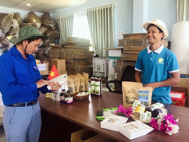 Nguyễn Tá Đông giới thiệu cho khách những sản phẩm được làm từ thảo dược trồng tại The Moshav Farm (ẢNH: NGUYỄN CHUNG)