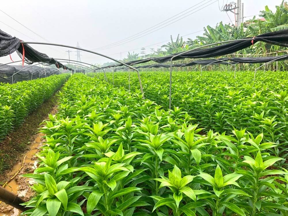 Trồng hoa LiLy tại hợp tác xã nông nghiệp Song Phượng, huyện Đan Phượng.