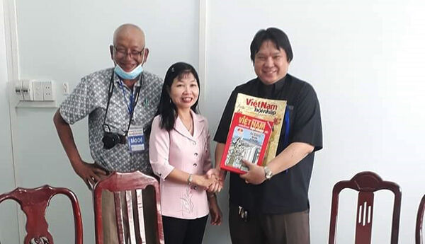Phó Trưởng Thường trực Cơ quan đại diện phía Nam Tạp chí Việt Nam hội nhập - Ông Nguyễn Hoàng Mộng Nam (bên phải) chúc mừng họp báo thành công tốt đẹp”.
