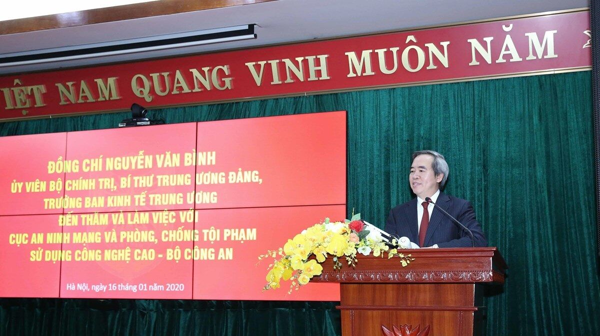 Chiều 16/1, Ủy viên Bộ Chính trị, Bí thư Trung ương Đảng, Trưởng ban Kinh tế Trung ương Nguyễn Văn Bình đã có buổi làm việc với Cục An ninh mạng và phòng, chống tội phạm sử dụng công nghệ cao (Cục A05), Bộ Công an. Tham dự có Thượng tướng Bùi Văn Nam, Ủy viên Trung ương Đảng, Thứ trưởng Bộ Công an. Báo cáo tóm tắt công tác bảo đảm an ninh mạng và phòng, chống tội phạm sử dụng công nghệ cao năm 2019, đề xuất một số nhiệm vụ trong năm 2020 và các năm tiếp theo.
