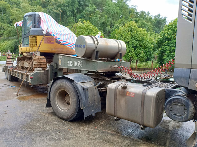 Trước đó, khoảng 23 giờ 45 phút ngày 16/10, tổ công tác phát hiện tại Km 173+00, trên Quốc lộ 3 thuộc địa phận thôn Khuổi Sla, xã Tú Trĩ, huyện Bạch Thông một chiếc xe ô-tô rơ-moóc BKS 20R-00589 chở một máy xúc mầu vàng, nhãn hiệu KOMATSU lưu thông theo hướng Thái Nguyên - Cao Bằng có nhiều dấu hiệu khả nghi, nên yêu cầu dừng xe kiểm tra.