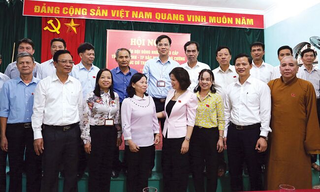 Chủ tịch HĐND tỉnh Nguyễn Hương Giang cùng các đại biểu Tổ đại biểu HĐND tỉnh khu vực thành phố Bắc Ninh, đại biểu HĐND thành phố Bắc Ninh với cử tri phường Võ Cường.