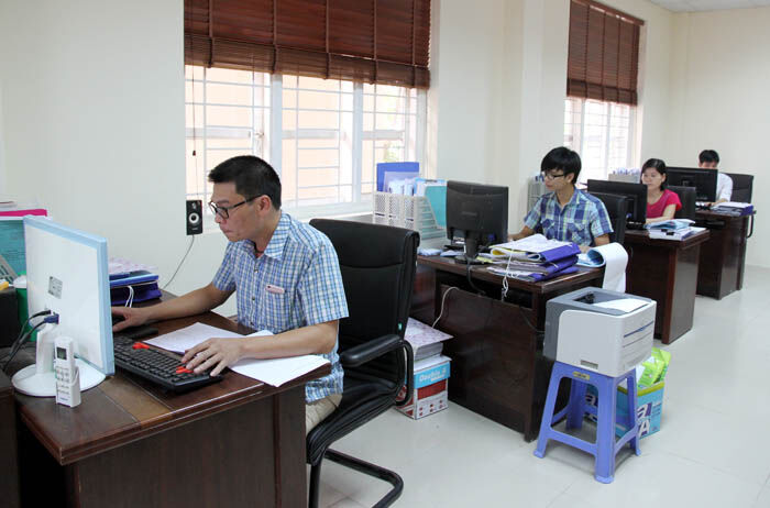 Các cán bộ công nhân viên chức đang áp dụng công nghệ trong xử lý công việc.