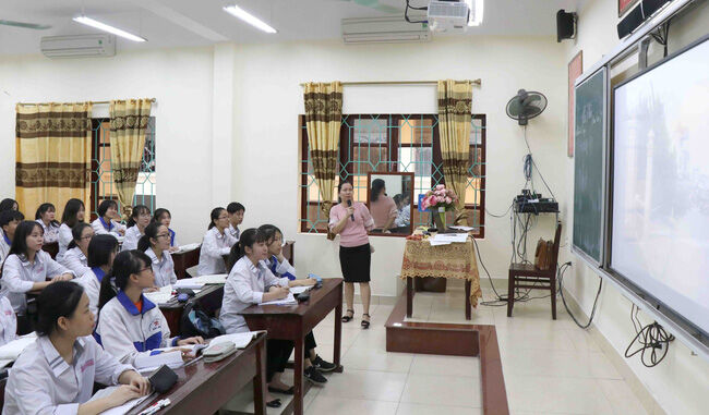 Trường THPT Hàn Thuyên, thành phố Bắc Ninh sử dụng phòng học thông minh trong giảng dạy.