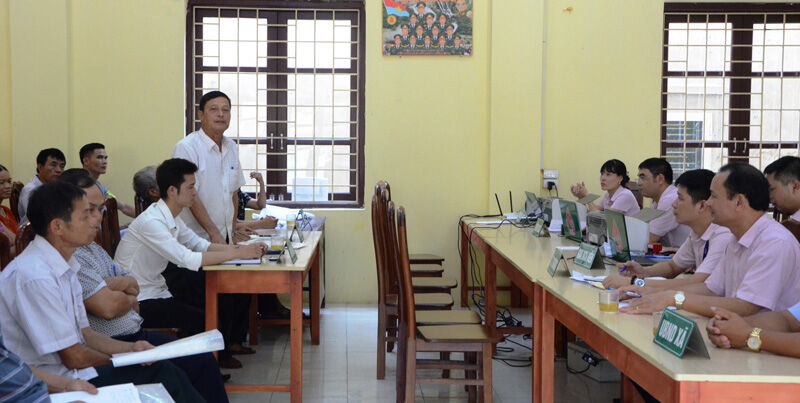 NHCSXH và chính quyền địa phương, các tổ chức hội đoàn thể, hộ vay vốn giao ban định kỳ hàng tháng tại điểm giao dịch xã Yên Giả (Quế Võ).