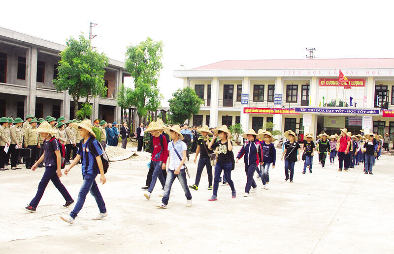 Sơ tán học sinh trong diễn tập khu vực phòng thủ thị xã Từ Sơn.