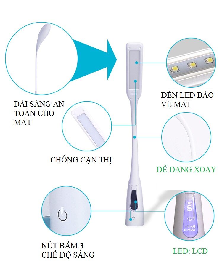 + Bộ sản phẩm được trang bị Đèn Led điều chỉnh 4 mức sáng chống cận thị tuyệt đối.