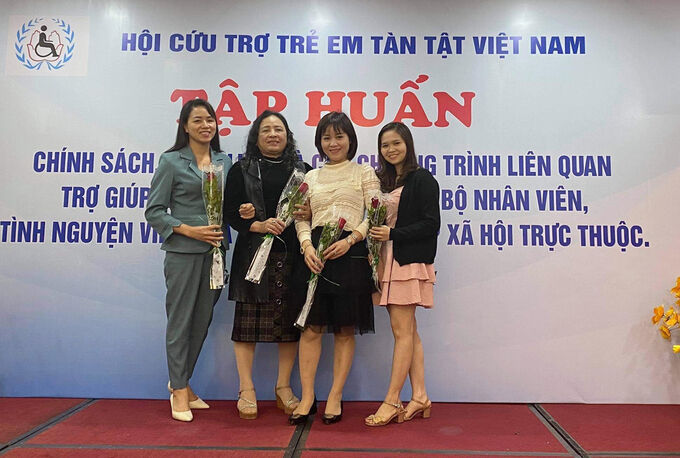 Trong ảnh Quỳnh và mẹ (đầu tiên và thứ hai từ trái qua) tham gia tập huấn để chăm sóc trẻ khuyết tật. Ảnh: Nhân vật cung cấp.