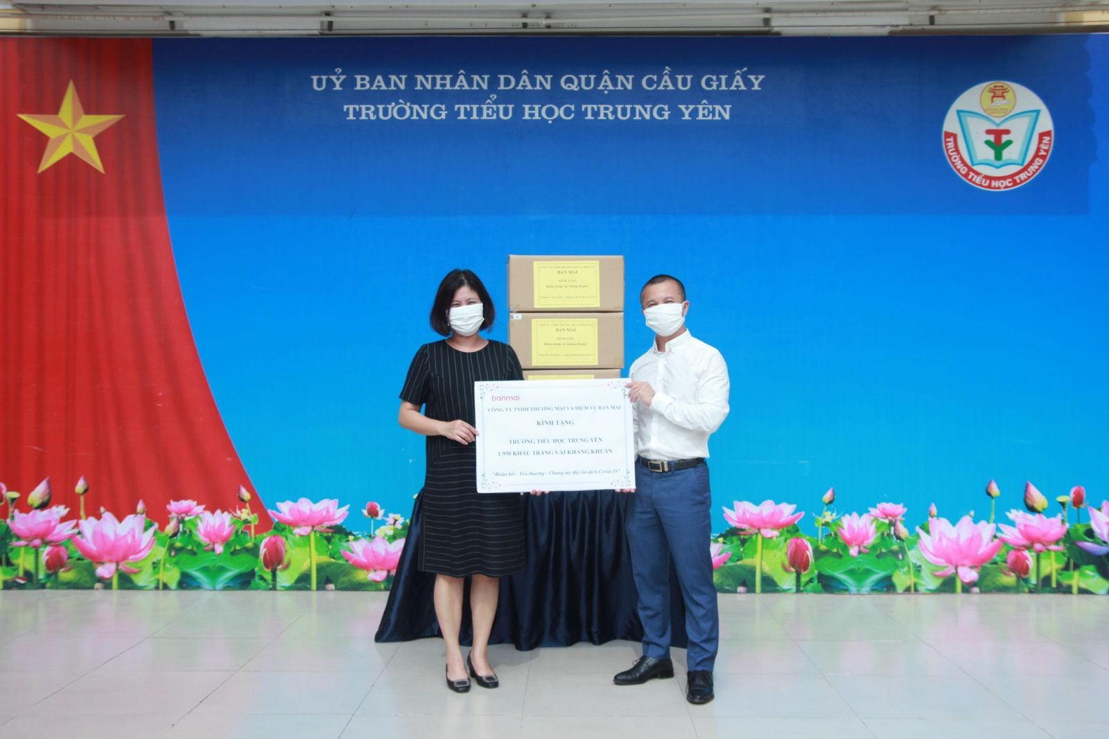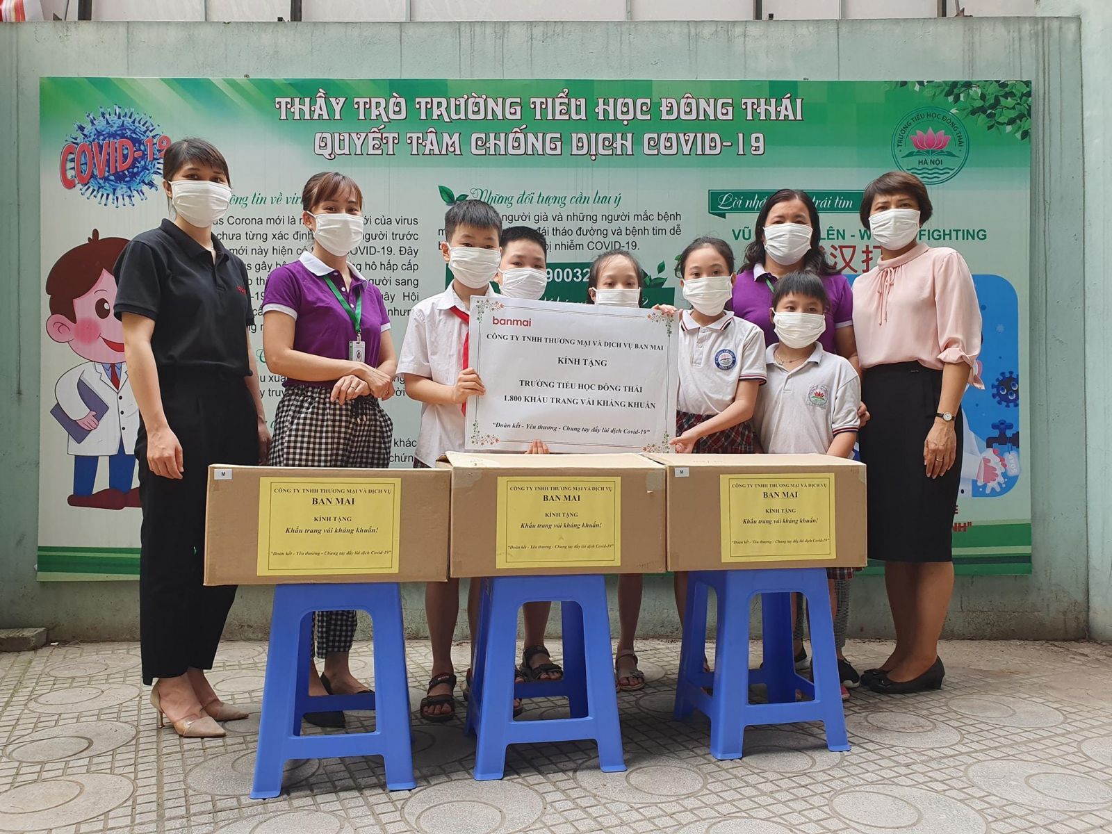 Với mong muốn bảo vệ tốt hơn trong công tác phòng chống dịch COVID-19, Công ty TNHH Thương mại và Dịch vụ Ban Mai đã trao tặng hàng chục nghìn khẩu trang vải kháng khuẩn cho cán bộ giáo viên và học sinh tại các trường học do Ban Mai phục vụ. Đây là loại khẩu trang giúp ngăn vi khuẩn, lọc sạch không khí. Sản phẩm có thiết kế vừa vặn, co giãn tốt, hạn chế tối đa khe hở nhưng vẫn tạo ra các khoảng trống thuận lợi cho việc hô hấp, đem lại cảm giác dễ thở. Ngoài ra, sản phẩm này có thể giặt và sử dụng nhiều lần.