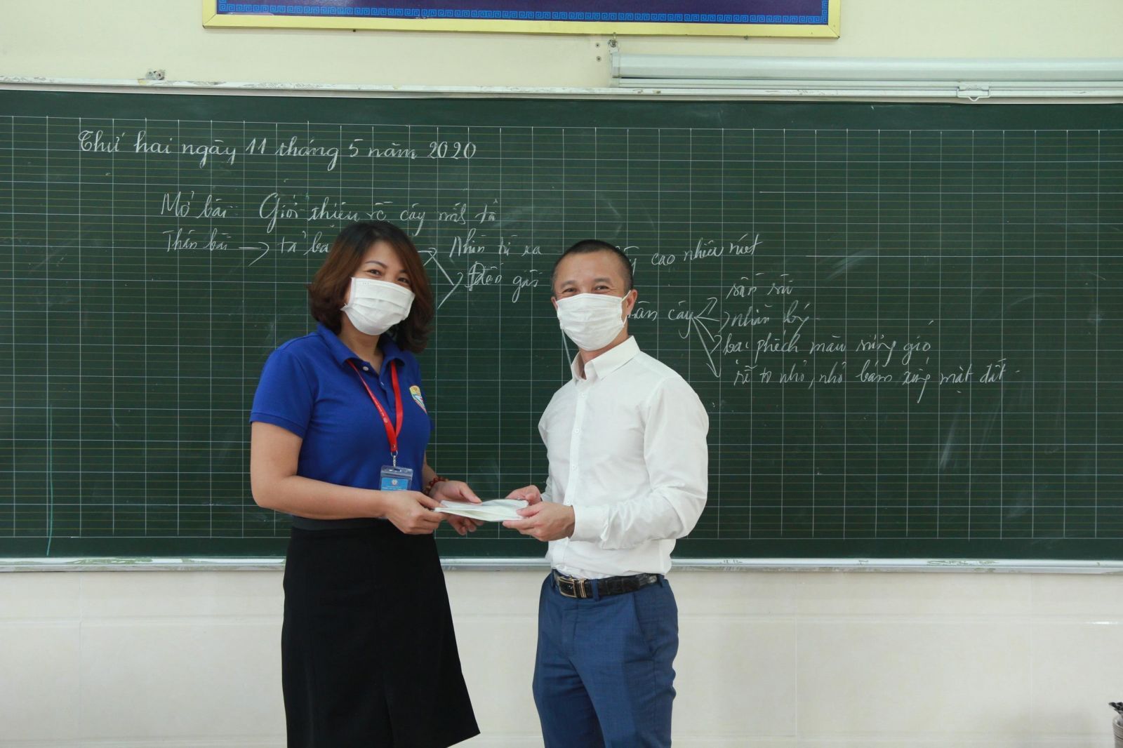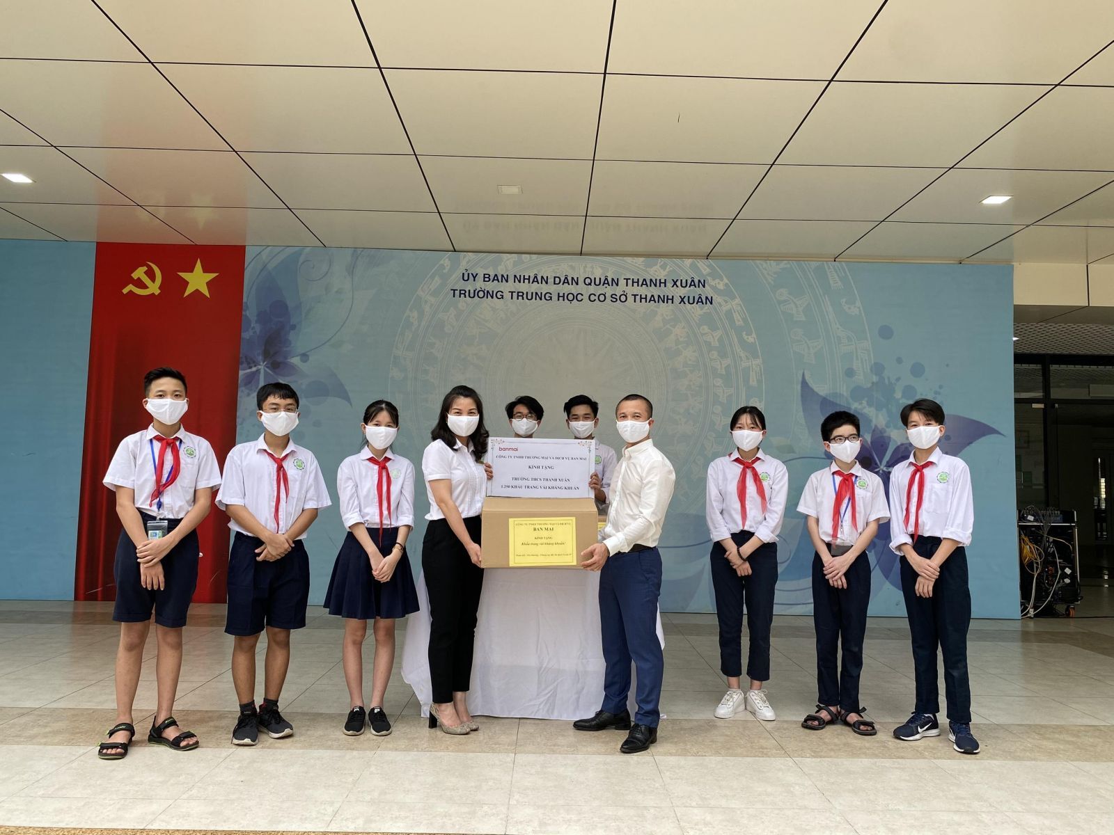 Trong ngày đầu trở lại trường học, cô và trò trường THCS Thanh Xuân được Công ty TNHH Thương mại và Dịch vụ Ban Mai trao tặng hàng nghìn khẩu trang