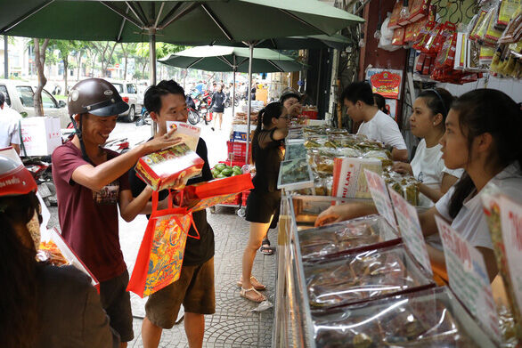 Thời điểm này người dân đi mua bánh trung thu rất đông.