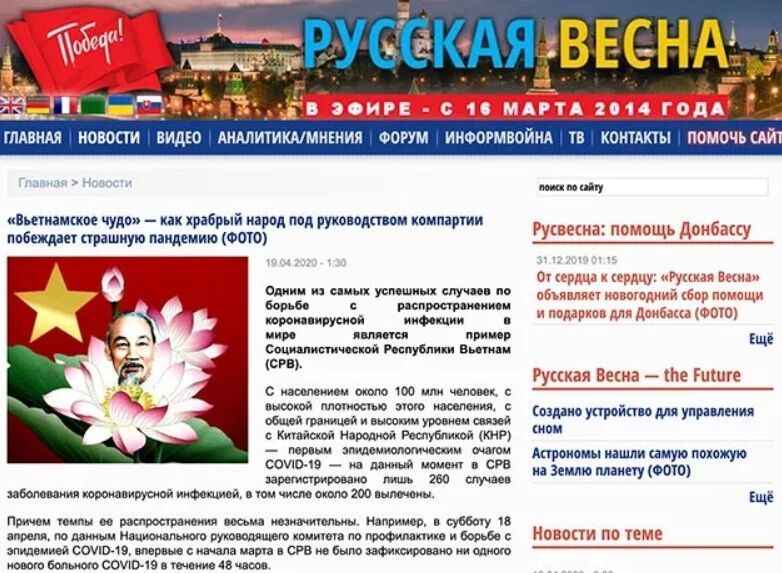 VNHN - Ngày 19-4, báo "Mùa xuân nước Nga" đã có bài viết ca ngợi những thành quả đáng khích lệ trong cuộc chiến chống đại dịch Covid-19 của chính phủ và nhân dân Việt Nam, dưới sự lãnh đạo của Đảng Cộng sản Việt Nam, gọi đây là "Phép nhiệm màu Việt Nam".