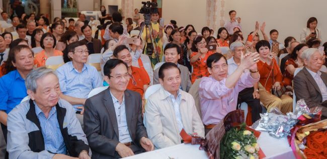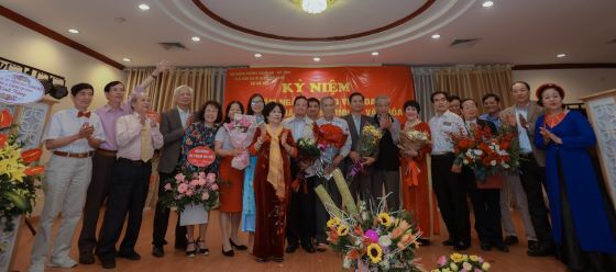 Đại diện Ban Lãnh đạo đồng hương 2 tỉnh Nghệ An và Hà Tĩnh trao hoa cho Ban lãnh đạo Câu lạc bộ Dân ca Ví, Giặm Nghệ Tĩnh tại Hà nội và các nghệ sỹ