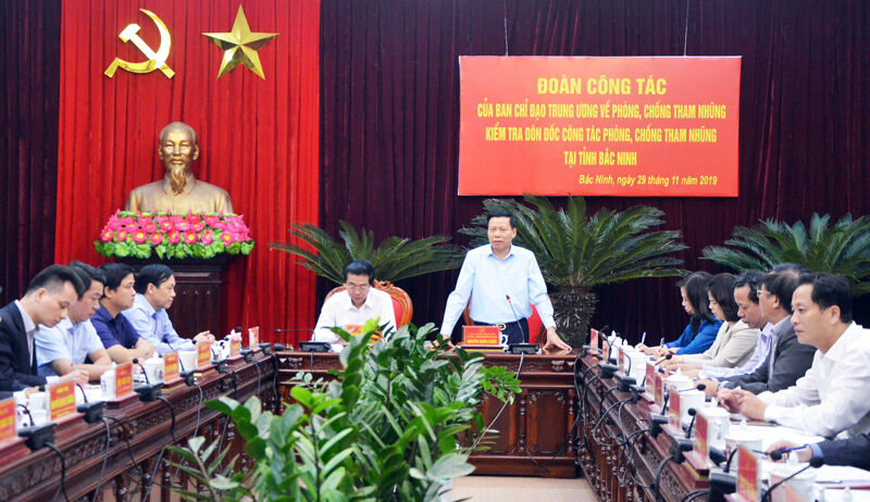 Đoàn công tác làm việc với Thường trực Tỉnh ủy và một số cơ quan, đơn vị có liên quan của tỉnh để đánh giá về công tác triển khai thực hiện chủ trương, chính sách của Đảng về PCTN năm 2018 và 9 tháng đầu năm 2019; kết quả đạt được; những hạn chế và giải pháp khắc phục; ghi nhận những kinh nghiệm thực hiện công tác PCTN tại tỉnh Bắc Ninh; xem xét tiến độ thực hiện đối với một số vụ việc cụ thể.