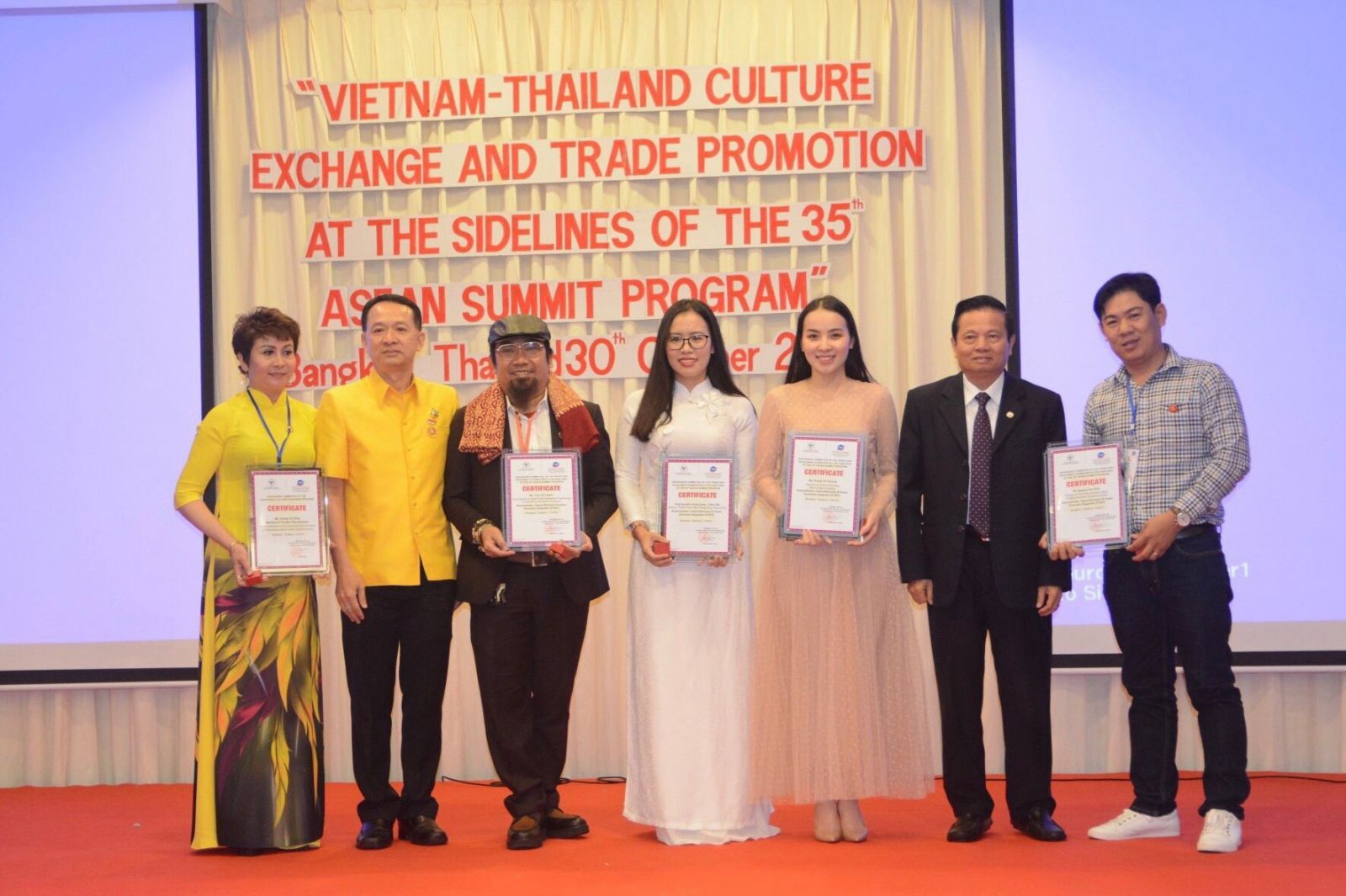 Doanh nhân Nguyễn Hoàng Sang (Thứ 3, bên trái) cùng các doanh nhân nhận Kỷ niệm chương tại Thái Lan.