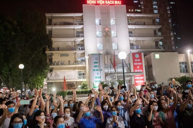 Bệnh viện Bạch Mai dỡ bỏ hàng rào cách ly, y bác sĩ vỡ òa hạnh phúc.