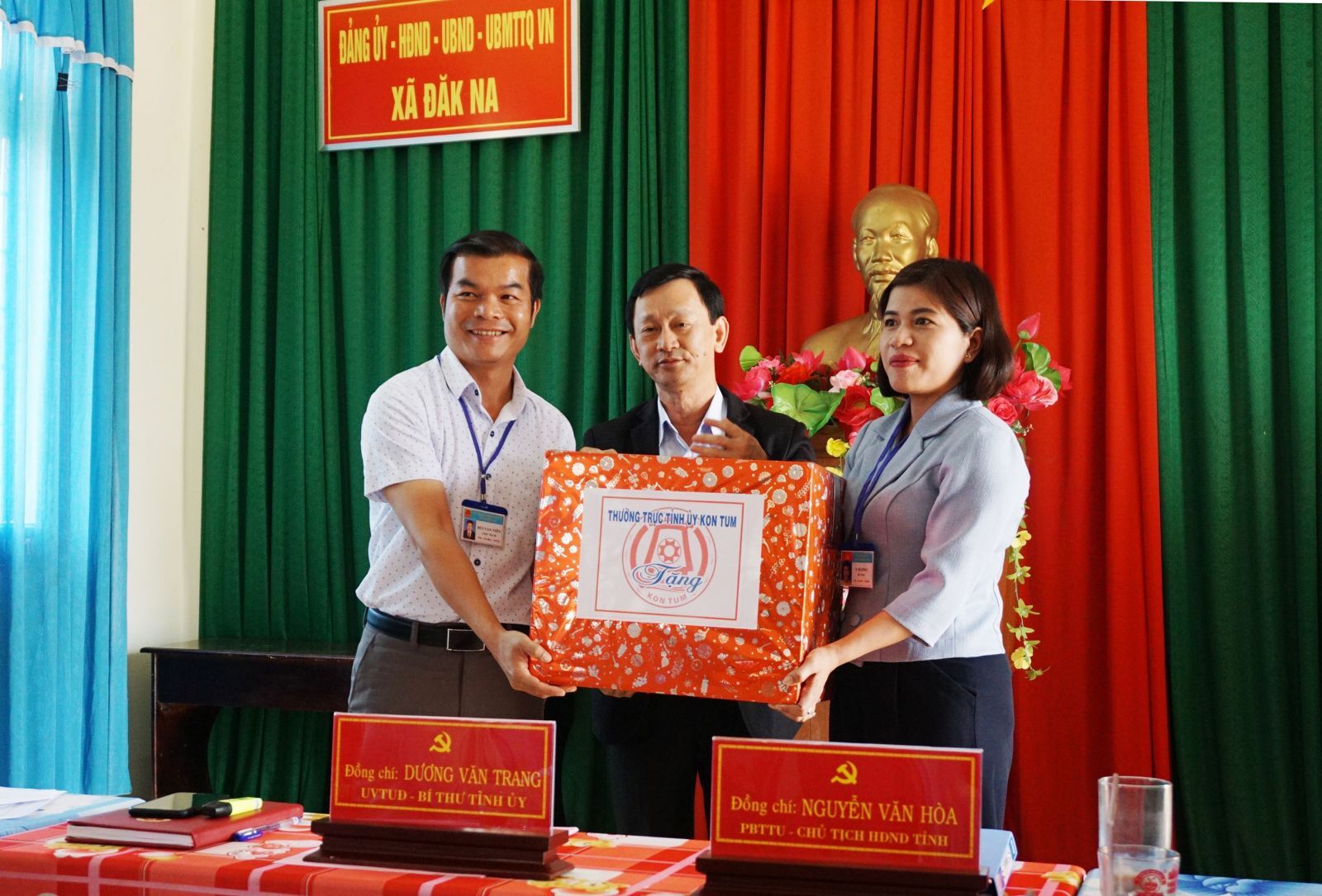 Đồng chí Bí thư Tỉnh ủy trao tặng quà cho xã Đăk Na ( Ảnh: TT).