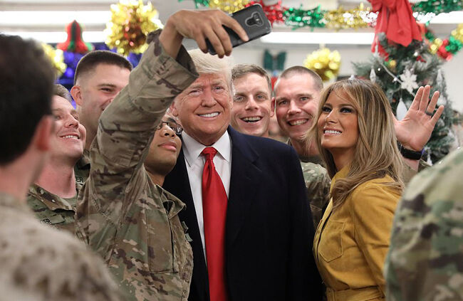 Tổng thống Trump chụp ảnh lưu niệm cùng binh sĩ tại căn cứ quân sự ở Iraq