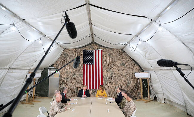 Hãng thông tấn Reuters (Anh) đưa tin đây là lần đầu tiên Tổng thống Trump thăm quân nhân Mỹ ở vùng chiến sự.