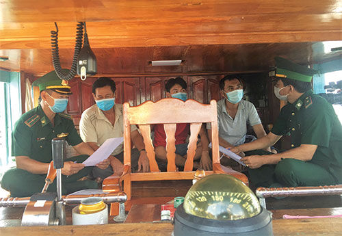 Tiến hành cho các hộ gia đình, ngư dân sống trong khu vực biên giới biển ký cam kết tham gia phong trào “Toàn dân phòng chống Covid-19 và xuất, nhập cảnh trái phép”. Nội dung cam kết gồm: thực hiện nghiêm biện pháp phòng chống dịch theo quy định của địa phương và hướng dẫn của Bộ Y tế; thông báo, tố giác khi phát hiện người xuất, nhập cảnh trái phép hoặc người từ vùng dịch trở về.