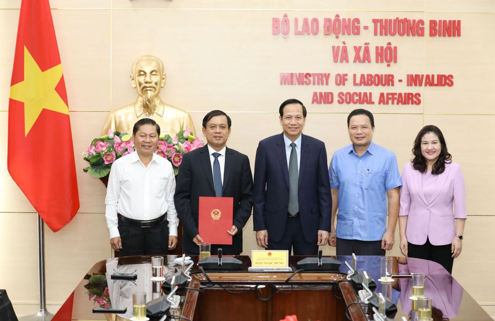 Bộ trưởng Đào Ngọc Dung (bên phải) trao quyết định của Thủ tướng Chính phủ bổ nhiệm ông Nguyễn Bá Hoan (bên trái) giữ chức Thứ trưởng Bộ Lao động - Thương binh và Xã hội
