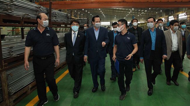 Bộ trưởng Đào Ngọc Dung kiểm tra công tác phòng, chống dịch tại một số tập đoàn, công ty lớn đóng trên địa bàn tỉnh Thái Nguyên (Ảnh minh họa: Mạnh Dũng)
