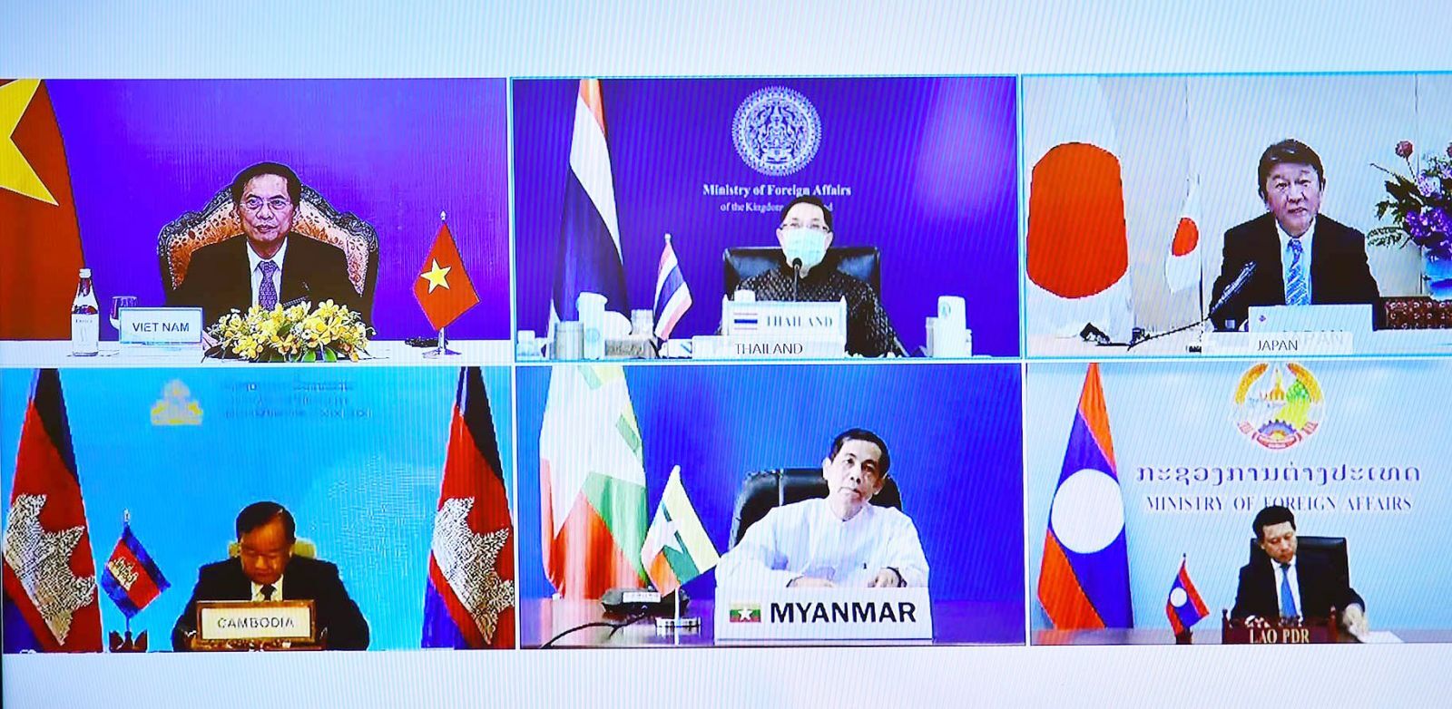 Hội nghị thảo luận tình hình và phương hướng hợp tác Mekong - Nhật Bản. Bộ trưởng Motegi thông báo Nhật Bản đã và đang thúc đẩy triển khai các dự án cơ sở hạ tầng ở khu vực với tổng trị giá 9 tỷ USD; cung cấp 5,6 triệu liều vaccine Covid-19, 700 máy tạo ôxy, cùng với 750 triệu Yên (6,8 triệu USD) hỗ trợ xây dựng hệ thống bảo quản lạnh dành các cho các nước Mekong.