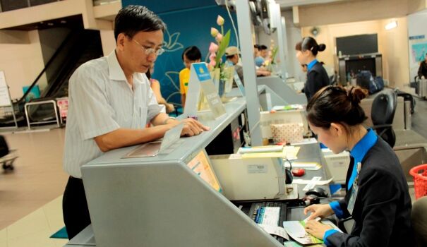 Hành khách làm thủ tục bay ở hãng Vietnam Airlines