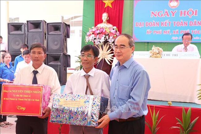 Ngày 17/11, Ban công tác Mặt trận ấp Phú Mỹ, xã Phú Túc, huyện Châu Thành, tỉnh Bến Tre, tổ chức Ngày hội đại đoàn kết toàn dân tộc gắn với “Cộng đồng vui hội làng Dừa” hưởng ứng lễ hội Dừa của tỉnh năm 2019. Ủy viên Bộ Chính trị, Bí thư Thành ủy Thành phố Hồ Chí Minh Nguyễn Thiện Nhân đến dự.