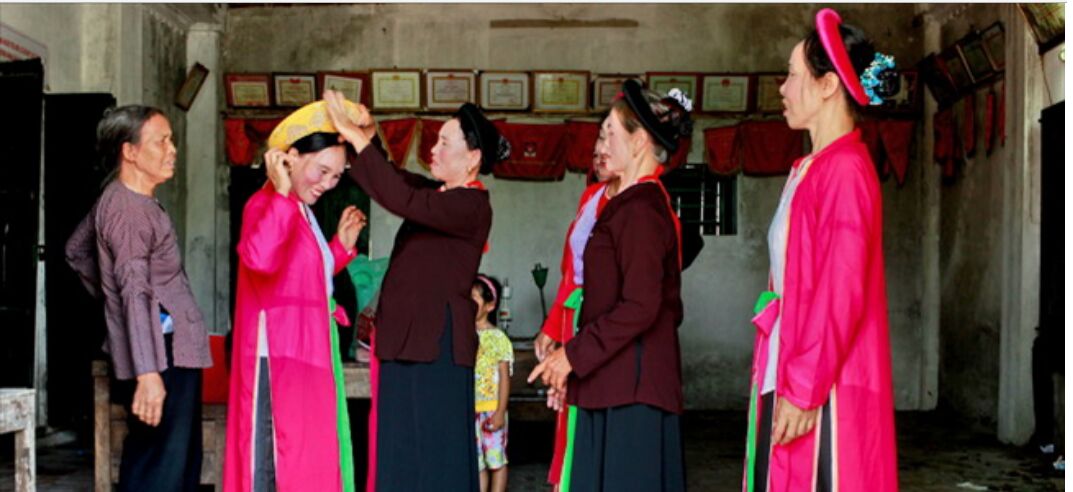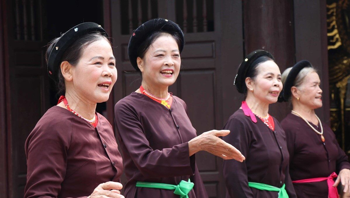 Các liền chị biểu diễn trống quân Bùi Xá, huyện Thuận Thành, tỉnh Bắc Ninh.