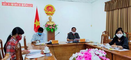 Tại điểm cầu Vĩnh Long, Phó Chủ tịch UBND tỉnh - ông Trần Hoàng Tựu tham dự hội nghị.