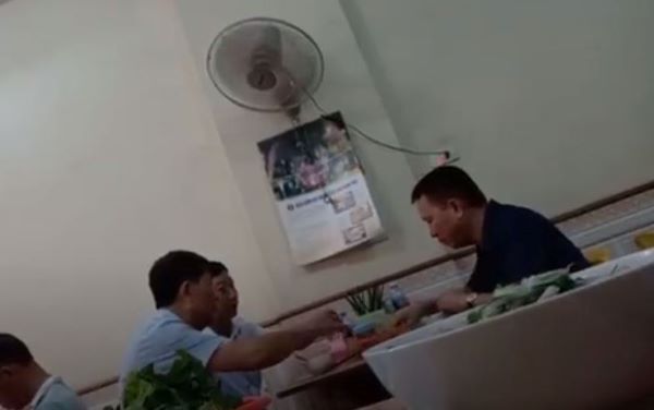 Trong nhóm 3 người có 2 người là cán bộ UBND phường Hồng Châu (ảnh cắt từ clip)