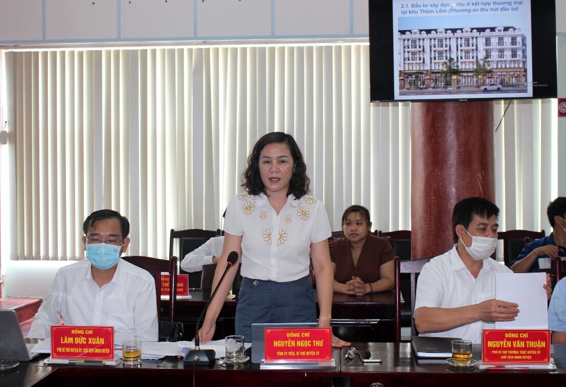 Các đại biểu thảo luận, cho ý kiến làm rõ một số nội dung liên quan đến những đề xuất chủ trương đầu tư của huyện; những vướng mắc, khó khăn và phát huy các lợi thế, tiềm năng của địa phương trong triển khai thực hiện các kế hoạch, mục tiêu phát triển KT - XH như: vấn đề quy hoạch, đầu tư xây dựng các dự án, phương án khai thác và phát triển quỹ đất; triển khai đề án về phát triển nông nghiệp lâu dài bền vững (lựa chọn mô hình, liên kết bao tiêu nông sản...); công tác quản lý, sắp xếp, điều chuyển cơ sở nhà, đất trên địa bàn...
