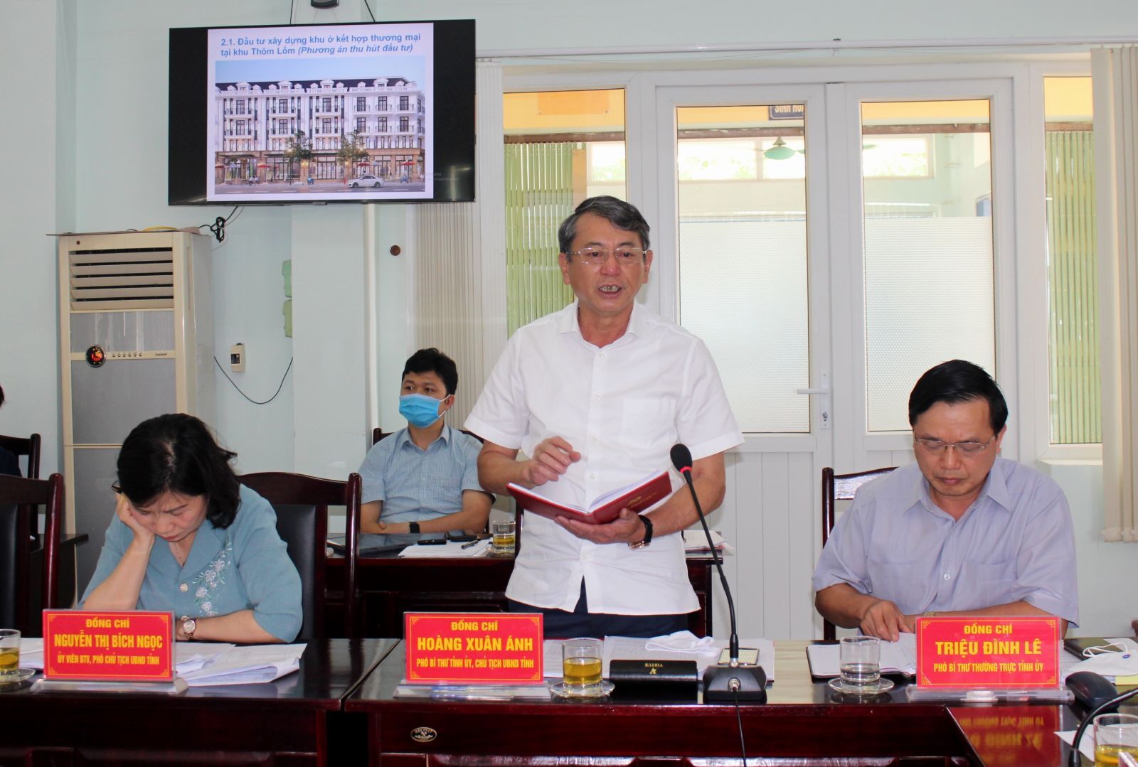 Xin chủ trương 4 dự án do huyện làm chủ đầu tư từ nguồn sử dụng đất gồm: Dự án xây dựng chợ Nước Hai; Dự án cải tạo, sửa chữa sân vận động huyện; Dự án xây mới trụ sở Đảng ủy, HĐND, UBND thị trấn Nước Hai; Dự án xây mới trụ sở Phòng Tài chính - Kế hoạch. Xin chủ trương đấu giá 5 địa chỉ đất do huyện quản lý: Trụ sở thị trấn Nước Hai; Phòng Tài chính - Kế hoạch; Chi cục Thuế Hòa An (cũ); Trung tâm Giáo dục thường xuyên (cũ); dãy trước sân vận động thị trấn.