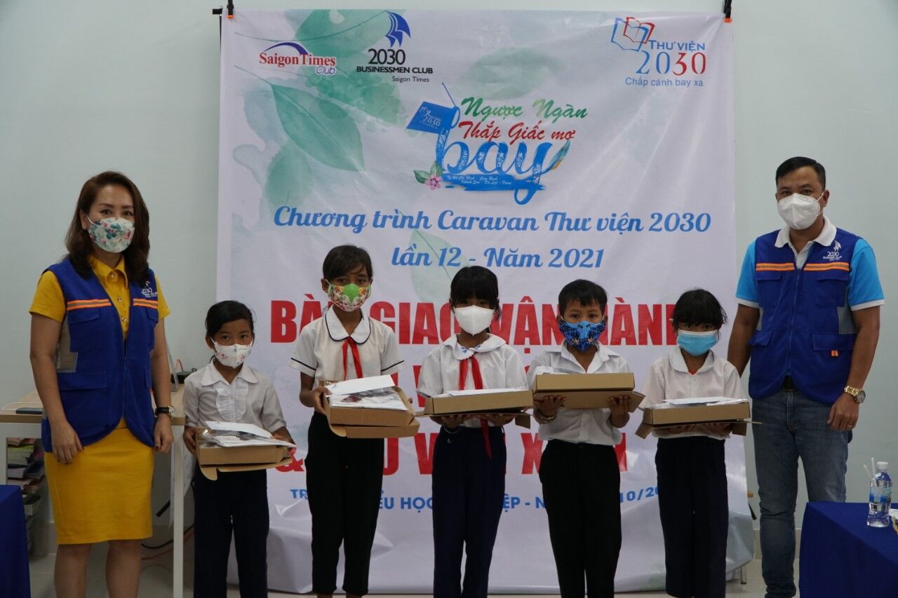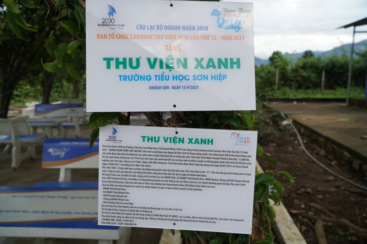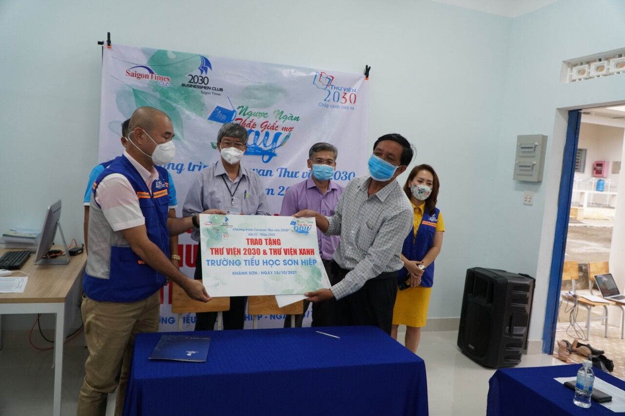 Lần này, vào ngày 15/10, Đoàn đã trao tặng 20 suất học bổng cho các em học sinh tiểu học Huyện Khánh Sơn. Bàn giao và đưa vào sử dụng “thư viện 2030- chắp cánh bay xa”- Thư viện tiên tiến chuẩn quốc gia được trang bị đầy đủ trang thiết bị hiện đại cùng 4509 đầu sách. Đồng thời bàn giao Thư Viện Xanh 2030 với diện tích 60m2 trang bị 6 bàn đọc, 12 ghế đá lọt lòng mảng xanh được chương trình triển khai gấp rút xây dựng trước năm học mới 2021-2022, như là một món quà ý nghĩa giúp các em học sinh và thầy cô có thêm không gian học tập, nghiên cứu.