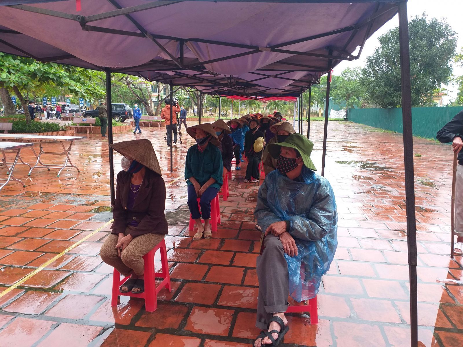 Người dân đến nhận gạo được hướng dẫn, đón tiếp chu đáo