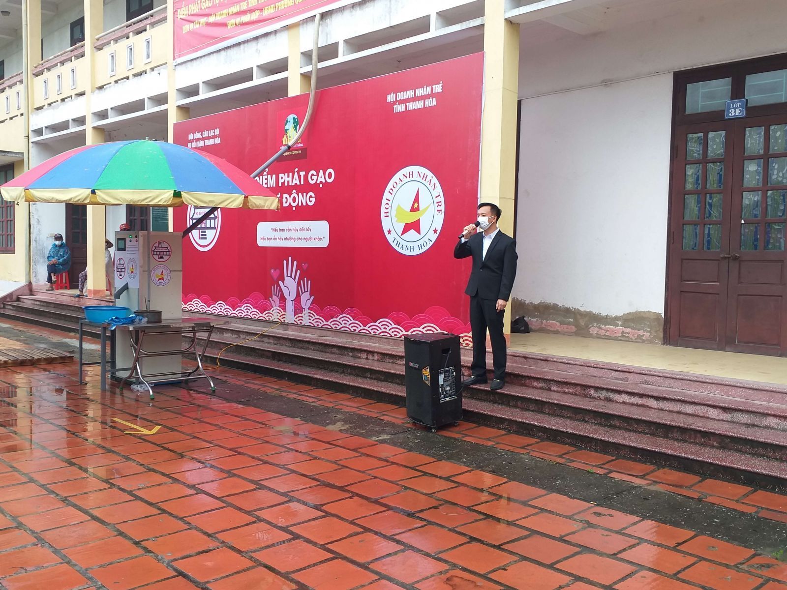 Phát biểu tại buổi cấp phát gạo miễn phí Ông Nguyễn Xuân Hưng, Chủ tịch Hội doanh nghiệp trẻ Thanh Hóa cho biết trong thời gian qua Hội đã tích cực tổ chức, vận động các hội viên tham gia ủng hộ công tác phòng chống dịch tại các cơ sở y tế, các địa phương, các khu cách ly. Chương trình cây “ATM gạo” hi vọng sẽ thêm phần nào giúp bà con vượt qua những khó khăn trước mắt, cùng với chính quyền địa phương chung tay phòng, chống dịch bệnh Covid-19. Hiện nguồn gạo và kinh phí huy động khoảng 20 tấn gạo, Hội doanh nhân trẻ Thanh Hóa sẽ tiếp tục kêu gọi các doanh nghiệp, cách mạnh tường quân, các tổ chức đoàn thể, cá nhân tham gia ủng hộ để chương trình được kéo dài hơn và được tiến hành tổ chức tại nhiều địa điểm trong tỉnh.