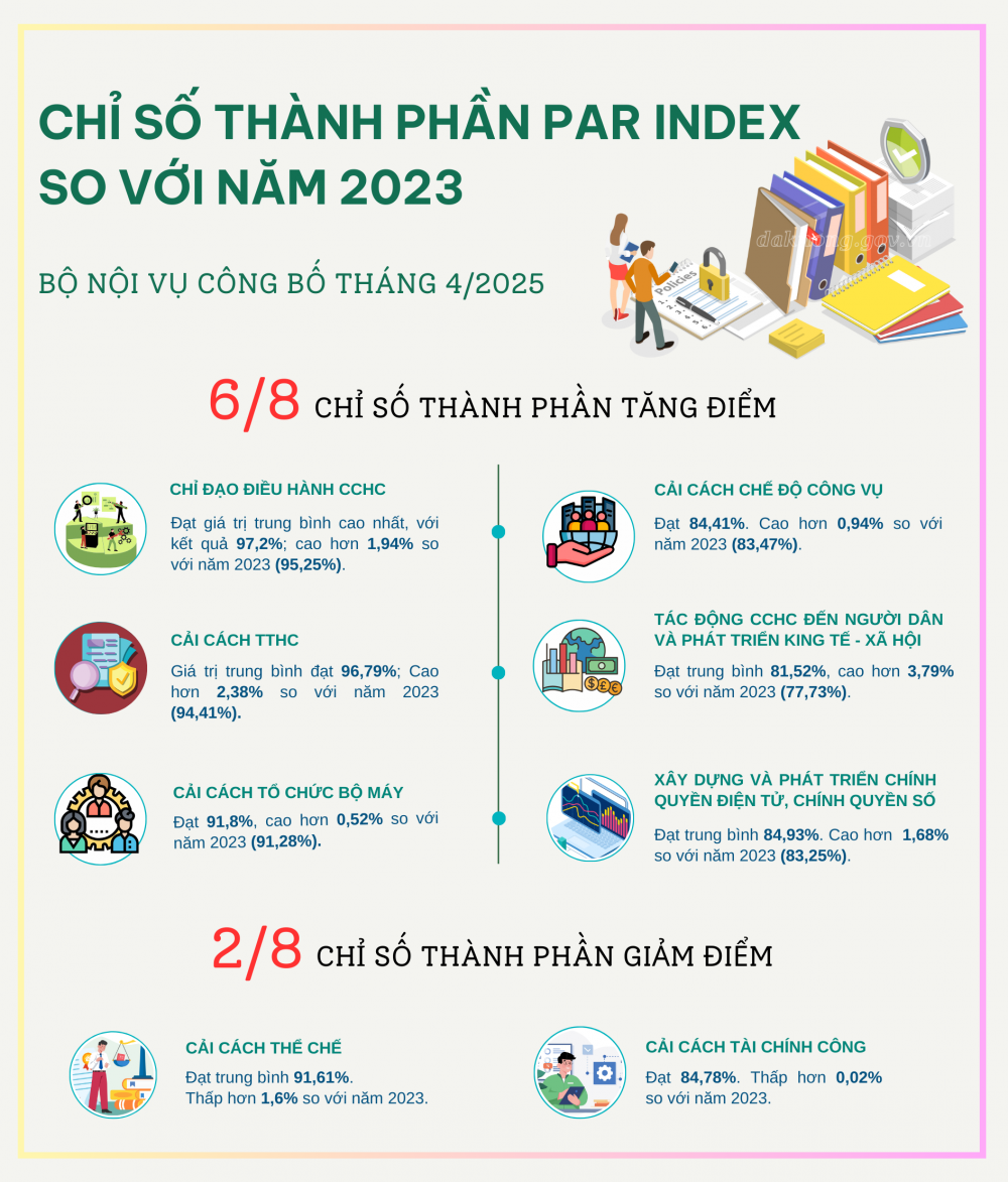 Theo đánh giá của Bộ Nội vụ, năm 2024, các địa phương đã có nhiều nỗ lực chỉ đạo và tổ chức triển khai công tác CCHC một cách toàn diện, hiệu quả. Kết quả đánh giá nhiều tiêu chí cho thấy sự chuyển biến rõ nét so với năm 2023; phương pháp chỉ đạo, điều hành CCHC có nhiều sáng tạo, đổi mới tích cực. Các hoạt động chỉ đạo, điều hành CCHC ngày càng có những chuyển biến tích cực cả về tư duy, hành động và hiệu quả đạt được trong thực tiễn.
