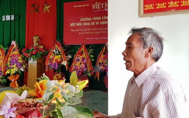 Ông Lê Văn Cẩn thôn 4, đại diện cho các gia đình nhập quà phát biểu “Bà con nhân dân xã Vĩnh An rất vui và biết ơn đoàn từ thiện đã tặng quà. Cuộc sống của bà con trong xã còn nhiều khó khăn, những phần quà yêu thương này sẽ giúp bà con chúng tôi ấm lòng hơn trong những ngày sắp tới. Tôi thật sự rất xúc động trước sự quan tâm của Tòa soạn Việt Nam Hội nhập đến với bà con nhân dân của xã. Một lần nữa tôi xin trân thành cảm ơn và chúc toàn thể lãnh đạo Tòa soạn cũng như các mạnh thường quân là các doanh nhân, doanh nghiệp ngày càng phát triển và có nhiều hơn nữa những chương trình thiện nguyện đầy ý nghĩa và nhân văn đến với bà con nhân dân có hoàn cảnh khó khăn trong cả nước”.