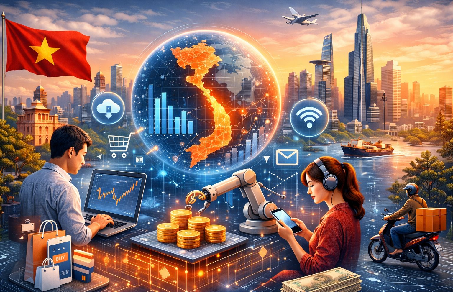 Kinh tế số là nền kinh tế dựa trên công nghệ số và dữ liệu làm yếu tố sản xuất trung tâm, bao gồm thương mại điện tử, dịch vụ số, công nghệ tài chính (FinTech), logistics số và các nền tảng số.
