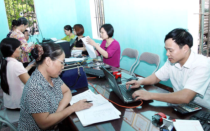 NHCSXH huyện Quế Võ thực hiện giao dịch lưu động tại xã Đức Long.