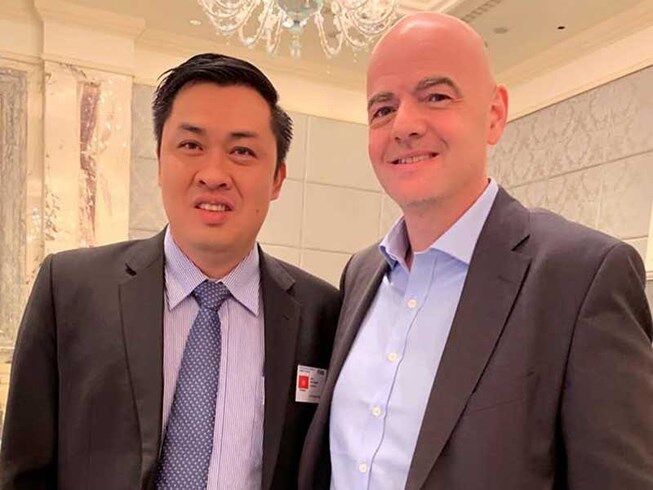 Ông Cao Văn Chóng (Bìa trái) cùng với Lãnh đạo cấp cao của FIFA trong một sự kiện bóng đá quốc tế ... (Ảnh: plo.vn)