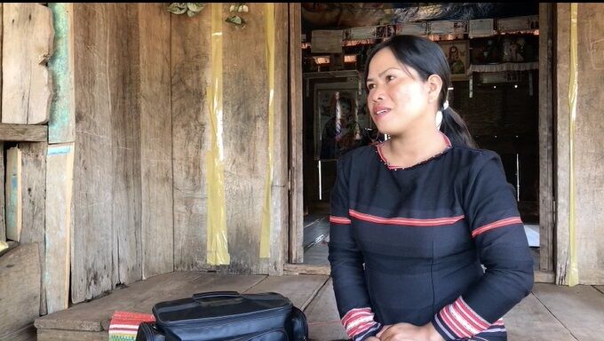 Chị Rơ Châm Alui tâm sự về nghề cô đơn thôn bản. Ảnh: laodong.vn