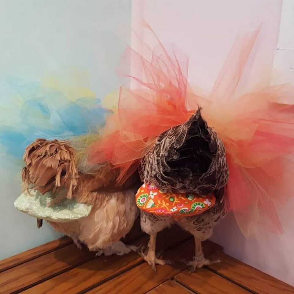 Ngoài việc sản xuất bỉm cho gà, Julie còn may cả váy cho gia cầm, những chiếc váy cũng rất màu sắc bắt mắt. Có lẽ đối với nhiều người việc may váy cho gà là một điều “điên rồ”, thế nhưng đây chỉ là chuyện nhỏ, bởi những người nuôi gà thậm chí còn cưng chiều vật nuôi của họ tới mức thuê cả "người kể chuyện" với giá 225USD (5,2 triệu đồng), đây quả thực đây là một chuyện khó có thể tin nổi.