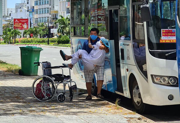 Bệnh nhân chạy thận được đưa từ khách sạn đến bệnh viện mỗi ngày để chăm sóc y tế.