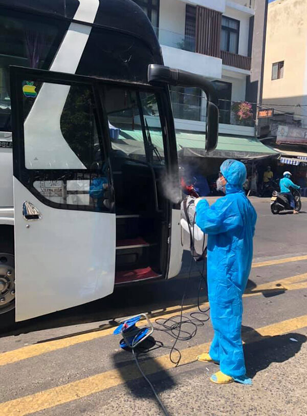 Khử khuẩn cho mỗi chuyến xe đưa đón bệnh nhân.