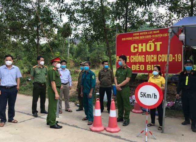 Các lực lượng chức năng huyện Lục Nam cắm chốt kiểm soát dịch bệnh, bảo đảm an toàn cho người dân. Ảnh: VGP/Vĩnh Hoàng